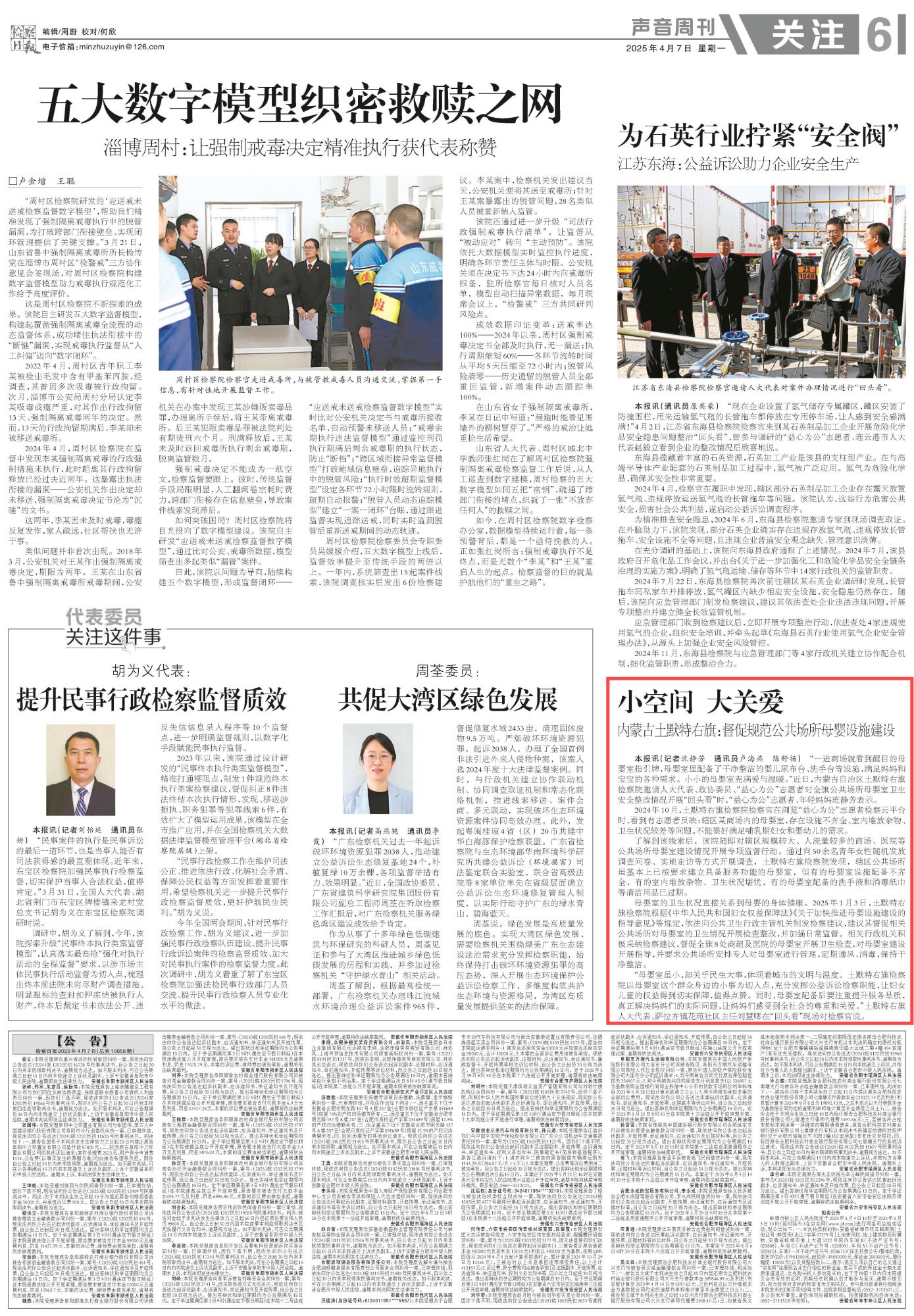 2025年4月7日,《檢察日報(bào)》第6版刊發(fā)題為《內(nèi)蒙古土默特右旗:督促規(guī)范公共場所母嬰設(shè)施建設(shè)》的文章,報(bào)道了內(nèi)蒙古自治區(qū)土默特右旗檢察院以母嬰室這個(gè)群眾身邊的小事為切入點(diǎn),充分發(fā)揮公益訴訟檢察職能,讓婦女兒童的權(quán)益得到切實(shí)保障,讓媽媽們感受到全社會的尊重和關(guān)愛。