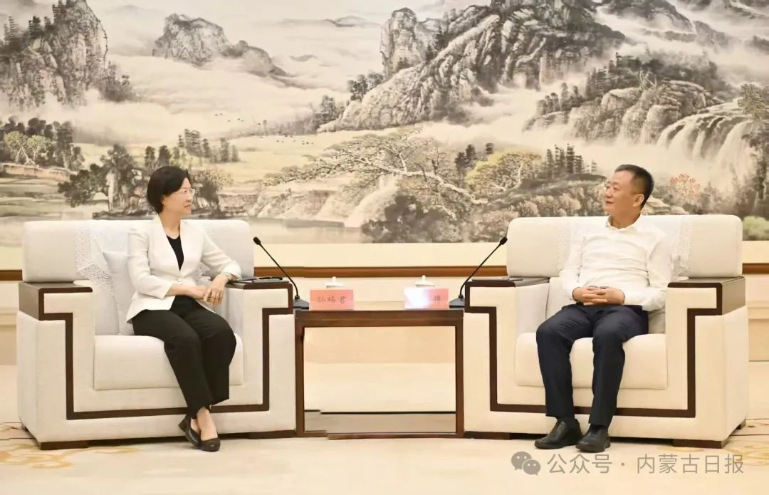 6月23日,自治區(qū)黨委書記孫紹騁在呼和浩特會見海關(guān)總署黨委書記、署長孫梅君。草原云·內(nèi)蒙古新聞網(wǎng)記者 馬建兵 攝