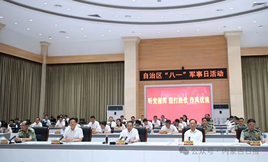 “八一”建軍節(jié)來(lái)臨之際,7月21日,自治區(qū)黨委書記、內(nèi)蒙古軍區(qū)黨委第一書記孫紹騁,自治區(qū)政協(xié)主席張延昆等自治區(qū)省軍級(jí)領(lǐng)導(dǎo)同志集體參加國(guó)防動(dòng)員能力建設(shè)成果展示活動(dòng)暨“八一”軍事日活動(dòng)。孫紹騁代表自治區(qū)黨委和政府,向駐區(qū)廣大解放軍指戰(zhàn)員、武警部隊(duì)官兵、軍隊(duì)文職人員以及民兵預(yù)備役人員、退役軍人致以節(jié)日祝賀,向廣大應(yīng)急救援人員致以誠(chéng)摯問候。