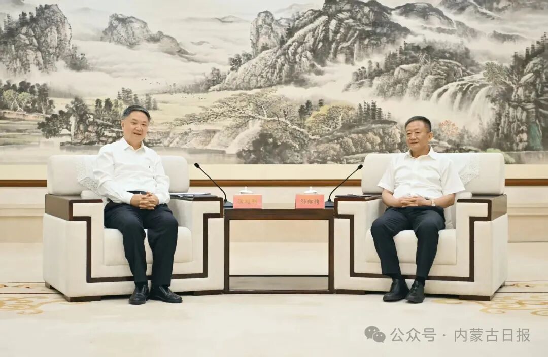 9月1日,自治區(qū)黨委書(shū)記孫紹騁在呼和浩特會(huì)見(jiàn)中國(guó)華能集團(tuán)有限公司黨組書(shū)記、董事長(zhǎng)溫樞剛。草原云·內(nèi)蒙古新聞網(wǎng)記者 馬建兵 攝