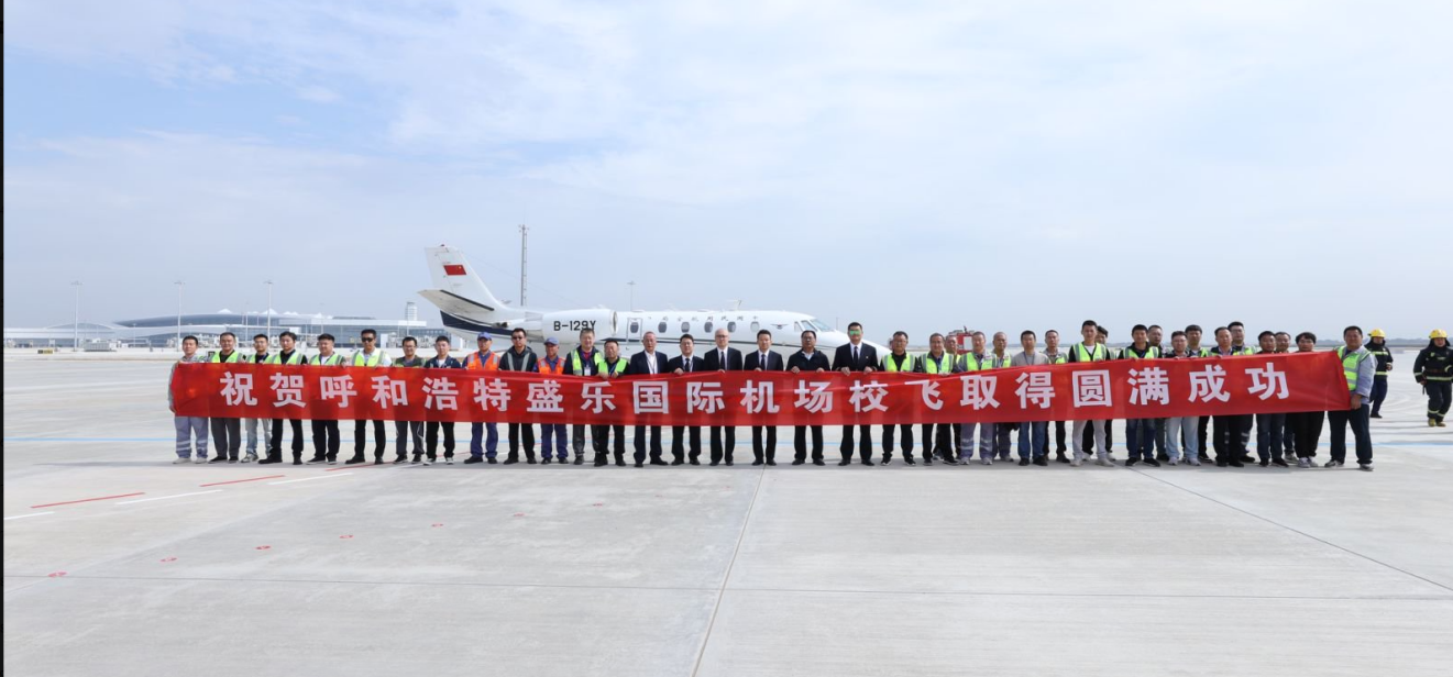 校驗飛行,是新建機場投運的關鍵環(huán)節(jié),是機場開放和航路運行的最基本的前提之一。9月5日,中國民用航空飛行校驗中心派出專業(yè)機組進駐開展校飛工作。9月12日,C560校驗飛機平穩(wěn)降落在跑道上,留下首道輪胎膠痕,完成了“第一飛”。專業(yè)團隊以專業(yè)的技術和嚴謹?shù)膽B(tài)度,通過專用校驗飛機對呼和浩特盛樂國際機場進行了1個月、110小時的校驗飛行,驗證了機場導航設施、助航燈光、飛行程序以及道面的性能,將設備調(diào)試到最佳工作狀態(tài),確保符合民航安全運行標準。