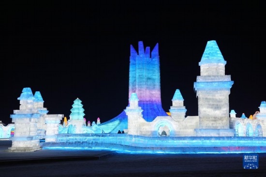 2月25日,游客在哈爾濱冰雪大世界園區(qū)游玩。