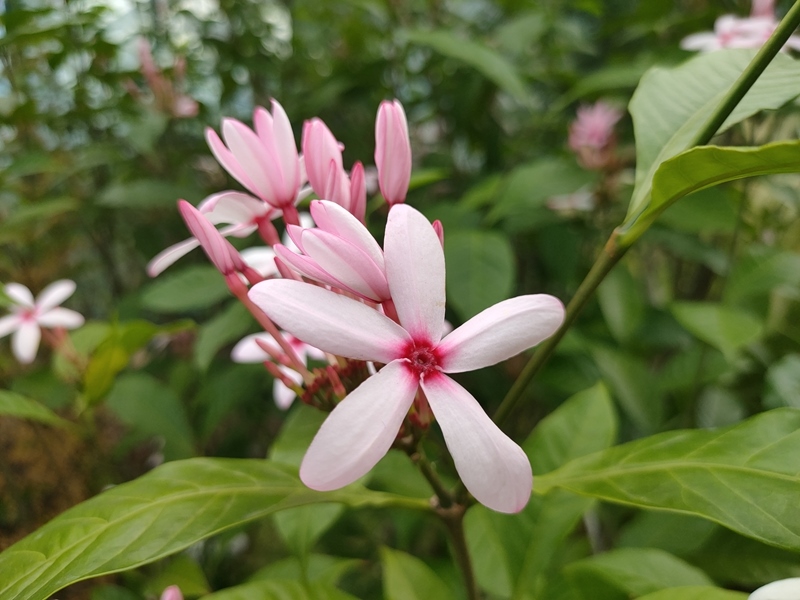 廣東省廣州市華南國家植物園里,紅花蕊木花色呈淡粉色,散發(fā)清香。人民網(wǎng) 王雅蝶攝
