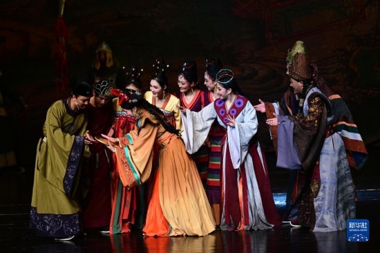 5月24日晚,演員在青海大劇院表演大型藏戲《金城公主》。