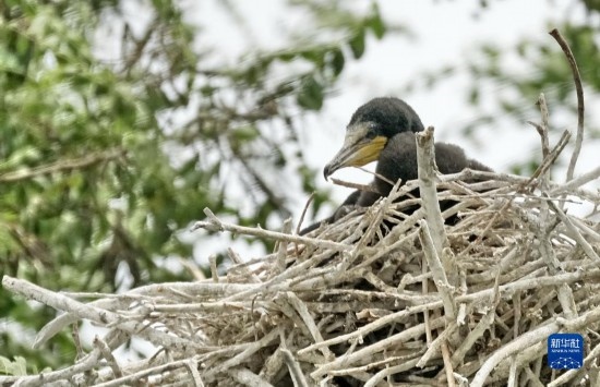 密云水庫“鳥島”上育雛的鸕鶿(5月31日攝)。