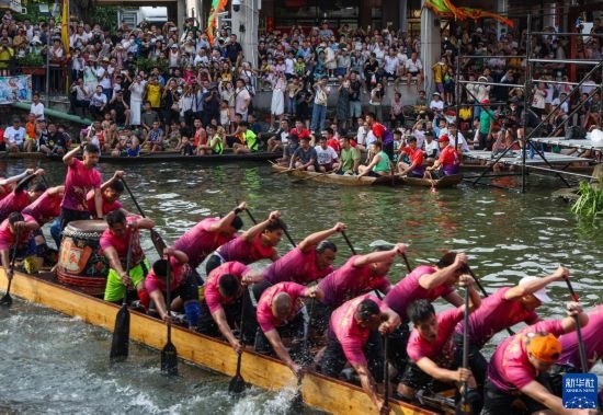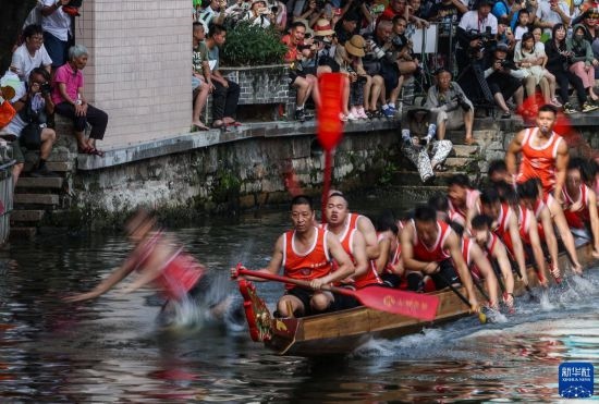 6月22日,觀眾在佛山疊滘東勝村觀看龍船漂移賽。