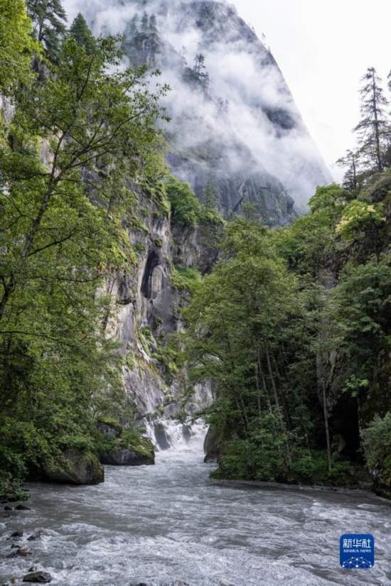 這是勒布溝內(nèi)的密林和河流(6月27日攝)。