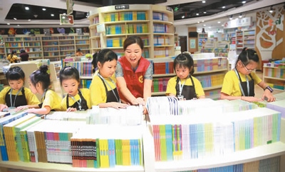 7月18日,來自重慶市沙坪壩區(qū)的20名小學(xué)生走進(jìn)重慶新華書店沙坪壩書城,化身“小小圖書管理員”,參加勞動職業(yè)體驗活動。趙杰昌攝(人民圖片)