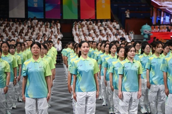 8月24日,杭州亞運(yùn)會(huì)、亞殘運(yùn)會(huì)賽會(huì)志愿者在出征儀式上。新華社記者黃宗治攝