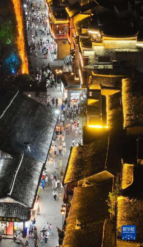 湖南省湘西土家族苗族自治州鳳凰古城持續(xù)推進(jìn)旅游環(huán)境提質(zhì)升級(jí),規(guī)范旅游市場(chǎng),完善旅游服務(wù)設(shè)施。每到夜晚,鳳凰古城沱江兩岸燈光璀璨,美景如畫,吸引眾多游客前來(lái)感受“夜鳳凰”的獨(dú)特魅力。