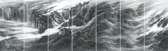 云壑聽泉232cm × 106cm × 7 2023 水墨紙本