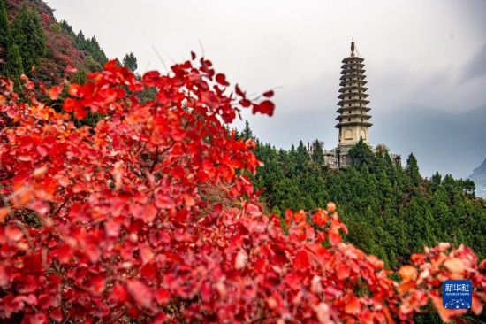 這是11月30日拍攝的紅葉掩映下的長(zhǎng)江三峽重慶市巫山縣水域景色。