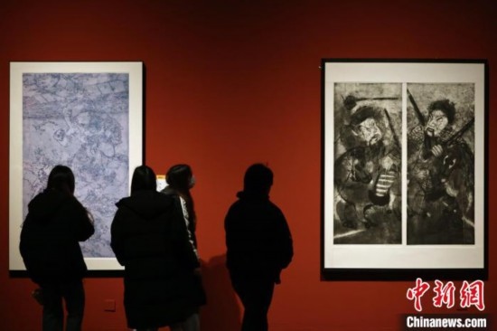 全國(guó)版畫(huà)作品展覽推出了一大批反映社會(huì)發(fā)展與人民形象的精品力作。 中新網(wǎng)記者 泱波 攝