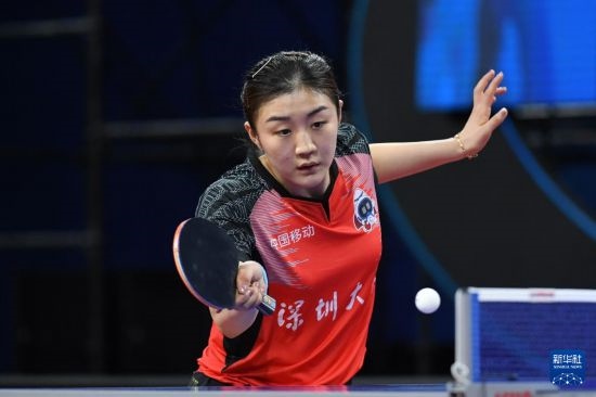 12月22日,深圳大學(xué)隊選手陳夢在女團半決賽中回球。她以0比3不敵華東理工大學(xué)隊選手李雅可。最終,深圳大學(xué)隊以總比分3比1戰(zhàn)勝華東理工大學(xué)隊。新華社記者 梁旭 攝