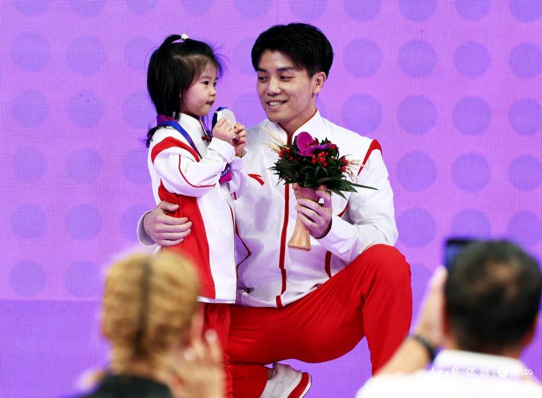 林超攀與女兒一同領(lǐng)取獎(jiǎng)牌