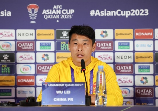1月16日,中國隊(duì)球員武磊在發(fā)布會上。新華社記者 丁汀 攝