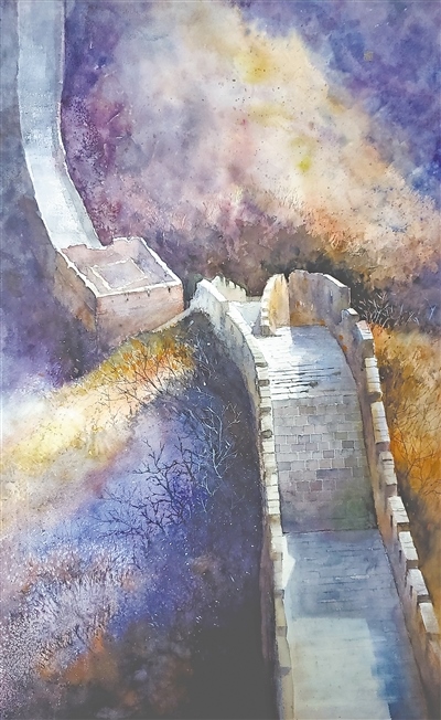 長(zhǎng)城歷經(jīng)風(fēng)霜雨雪,形成了大氣蒼茫的自然面貌。呈現(xiàn)長(zhǎng)城歷史、傳承長(zhǎng)城文化的另一種方式,是發(fā)揮美術(shù)在塑造藝術(shù)形象方面的獨(dú)特優(yōu)勢(shì),通過(guò)豐富多變的視角和繪畫(huà)語(yǔ)言展現(xiàn)長(zhǎng)城的滄桑之美與雄渾氣魄。在山西省文化和旅游廳、陽(yáng)泉市人民政府主辦的“2023印象長(zhǎng)城主題文化交流展”上,劉伯務(wù)油畫(huà)《屹立千秋》以夕陽(yáng)下的嘉峪關(guān)長(zhǎng)城為表現(xiàn)對(duì)象,暖色調(diào)的城墻與遠(yuǎn)處冷色調(diào)的雪山形成對(duì)比,突顯“天下第一雄關(guān)”的瑰麗奇?zhèn)?。李世玲中?guó)畫(huà)《古塞千秋》以三聯(lián)畫(huà)形式展現(xiàn)夯土長(zhǎng)城歷經(jīng)風(fēng)雨依然昂首屹立的景象,并通過(guò)色彩變幻反映滄海桑田的歷史變遷。在青海省文化和旅游廳主辦的“長(zhǎng)城長(zhǎng) 河湟美”青海明長(zhǎng)城文化主題采風(fēng)創(chuàng)作系列活動(dòng)中,美術(shù)工作者多次前往長(zhǎng)城沿線體驗(yàn)生活,抒寫(xiě)長(zhǎng)城古韻,像汪珍系列版畫(huà)《長(zhǎng)城長(zhǎng) 河湟美》等作品,以不同視角、立意、造型,藝術(shù)地表現(xiàn)長(zhǎng)城上的時(shí)間印記,展示了長(zhǎng)城深沉悠遠(yuǎn)的詩(shī)意與韻味。