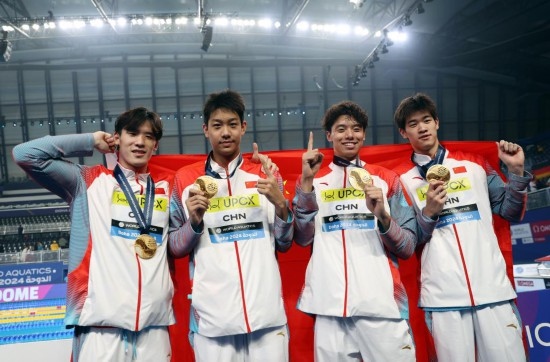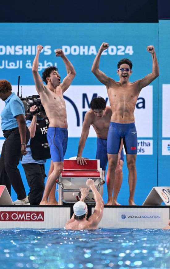 11日,中國農(nóng)歷甲辰龍年大年初二,多哈世界游泳錦標(biāo)賽游泳項(xiàng)目第一個(gè)比賽日,潘展樂和隊(duì)友季新杰、張展碩、王浩宇在男子4×100米自由泳接力決賽中以3分11秒08贏得金牌,為中國男子游泳創(chuàng)造歷史!中國游泳此前還從未獲得過世錦賽或者奧運(yùn)會的男子接力冠軍。