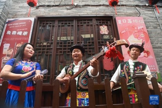 4月13日,演員在廣西南寧市三街兩巷表演節(jié)目。