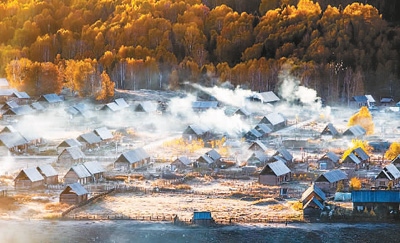 晨光透過薄霧,灑向布爾津縣禾木村這座古老的村落。裊裊炊煙從尖頂小木屋上升起,蒼鷹在空中盤旋,遠(yuǎn)處的白樺林連綿不絕,溫柔環(huán)抱著禾木村。