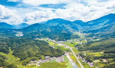 江西省靖安縣中源鄉(xiāng),漂亮的民居與夏日的田園、青山構成了一幅美麗的畫卷。周 亮攝(人民圖片)