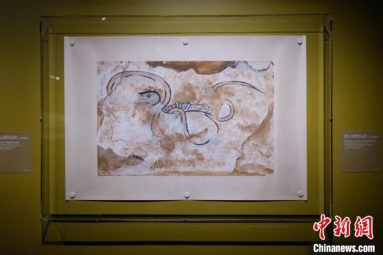 當?shù)貢r間9月4日,百余件遼寧三燕文物亮相紐約華美協(xié)進社中國美術館秋季特展《龍城之金:遼寧三燕文物選萃,337-436》。圖為展出的玄武圖摹本。 中新社記者 王帆 攝