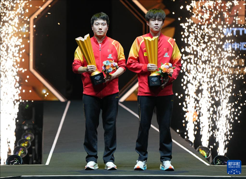 新華社北京10月5日電(記者岳冉冉、郁思輝)2024年世界乒乓球職業(yè)大聯(lián)盟(WTT)中國大滿貫賽5日決出男雙金牌,王楚欽/梁靖崑在0:2落后的情況下,3:2逆轉(zhuǎn)戰(zhàn)勝隊友林詩棟/林高遠(yuǎn),獲得冠軍。