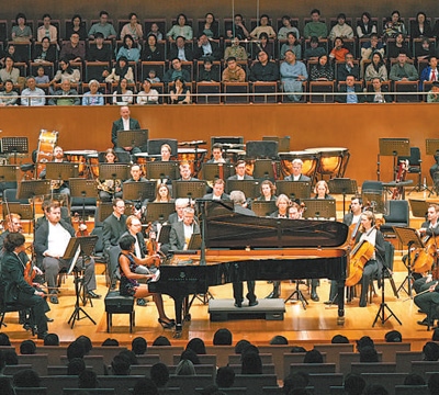 安東尼奧·帕帕諾、王羽佳與倫敦交響樂團(tuán)音樂會(huì)現(xiàn)場(chǎng)。陳 巖攝