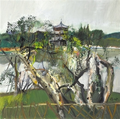 一系列實踐折射出新時代油畫的特點:既蘊(yùn)含現(xiàn)實主義理念和表現(xiàn)的深度,又富有東方浪漫主義的詩性。比如,在“第四屆青山行不盡——唐詩之路藝術(shù)展:長風(fēng)幾萬里”“山海神游——詩路浙江山水繪畫臺州主題展”等展覽上,一些充滿山海情懷、草木生機(jī)、時尚意趣的作品,正體現(xiàn)了創(chuàng)作者根植時代生活的藝術(shù)創(chuàng)造,以及圓融飽滿、充滿東方意蘊(yùn)的表達(dá)?!敖搅魟氽E,我輩復(fù)登臨”。對于畫家而言,每一次登臨祖國的名山大川,都仿佛是應(yīng)和歷史的邀約。我們重識祖國的山水,接受山水的浸潤,直面山水的歷史,把握山水的立意,實現(xiàn)山水的寫意。這種腳踏大地、丈量古今的行走,成為詩意汩汩不絕的生長方式——不管承載這詩意的是煥彩文章、是筆墨油彩、是影像裝置,還是園林雕塑或者其他。