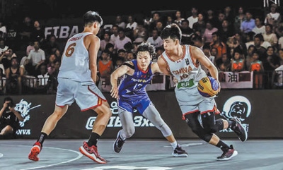 2024國際籃聯(lián)三人籃球國家聯(lián)賽(孝感站),選手在比賽中拼搶。王 亮 袁 鑫攝影報道