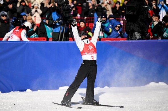 2月9日,徐夢桃在賽后慶祝。新華社記者 夏一方 攝