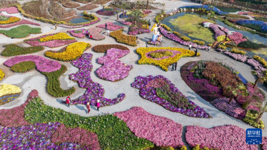 2月21日,游客在昆明市海洪莫奈花園參觀、游覽(無(wú)人機(jī)照片)。