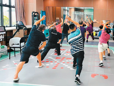 2024年9月3日,深圳南山慢病院,運(yùn)動(dòng)康復(fù)師王千武(面對(duì)鏡頭者)正在指導(dǎo)慢病患者科學(xué)鍛煉。