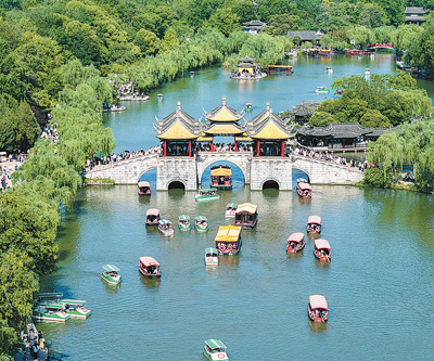 “五一”假期,人們?cè)诮K揚(yáng)州瘦西湖景區(qū)游覽。