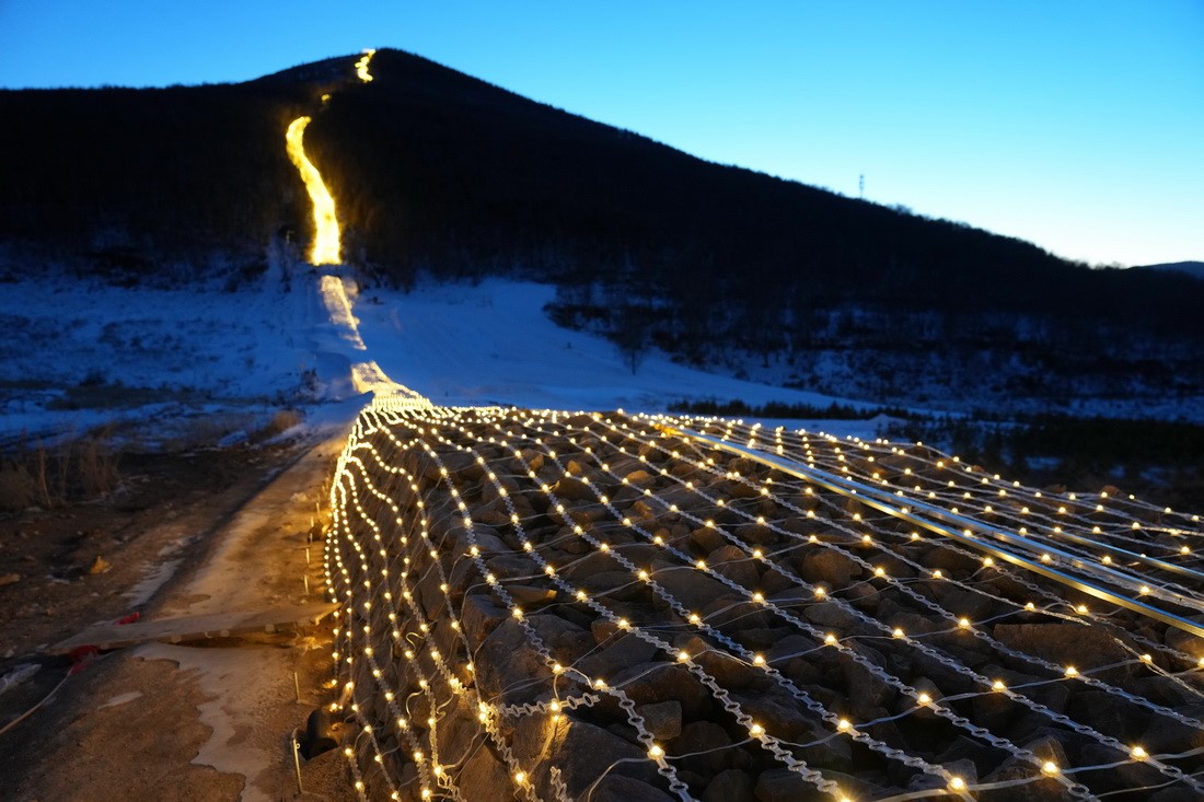 這是崇禮長(zhǎng)城景觀展示亮化工程現(xiàn)場(chǎng)的燈帶(12月30日攝)。新華社記者 楊世堯 攝