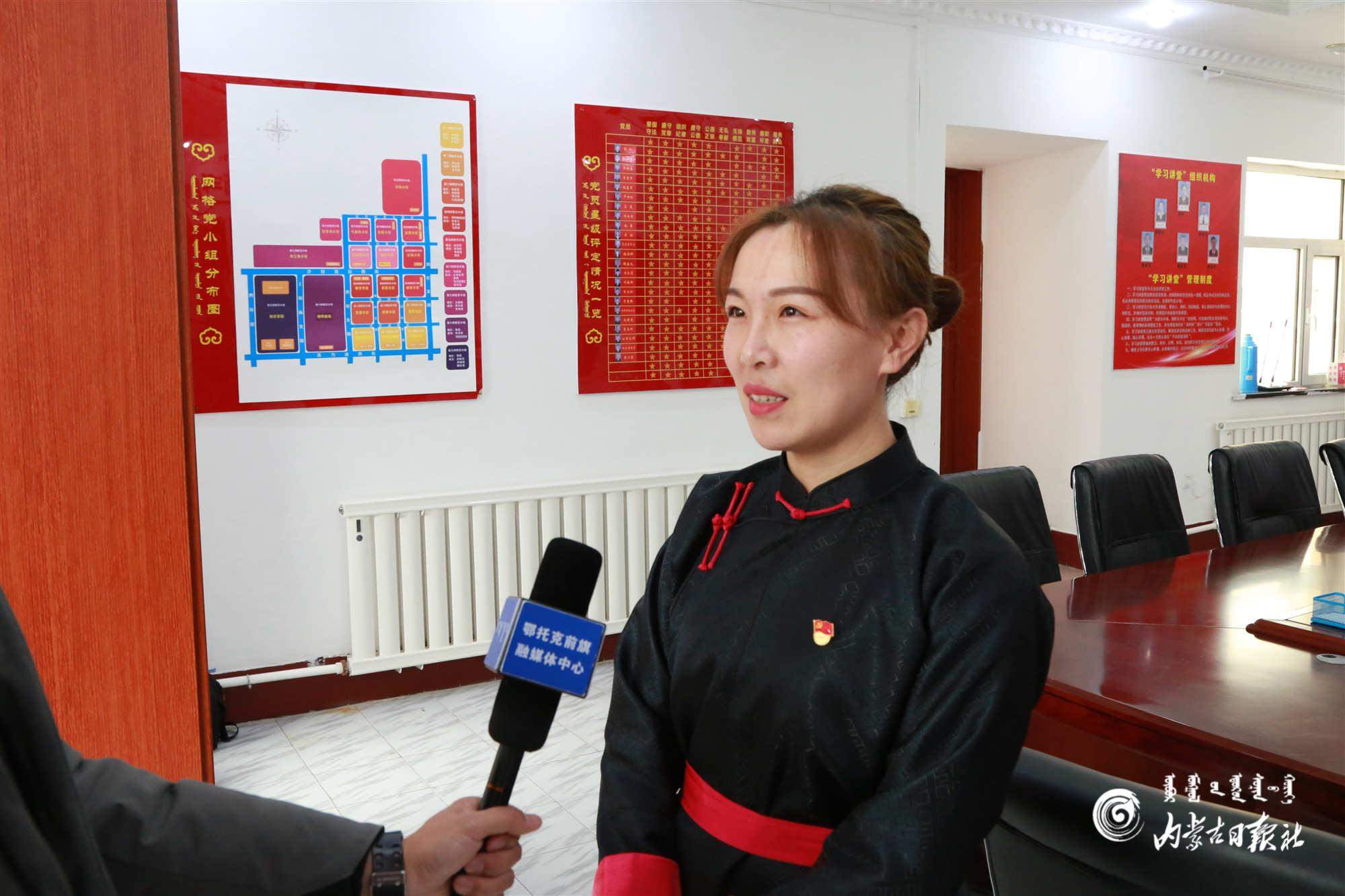 滿都拉社區(qū)黨支部書記、居委會主任鄔瓊接受采訪。