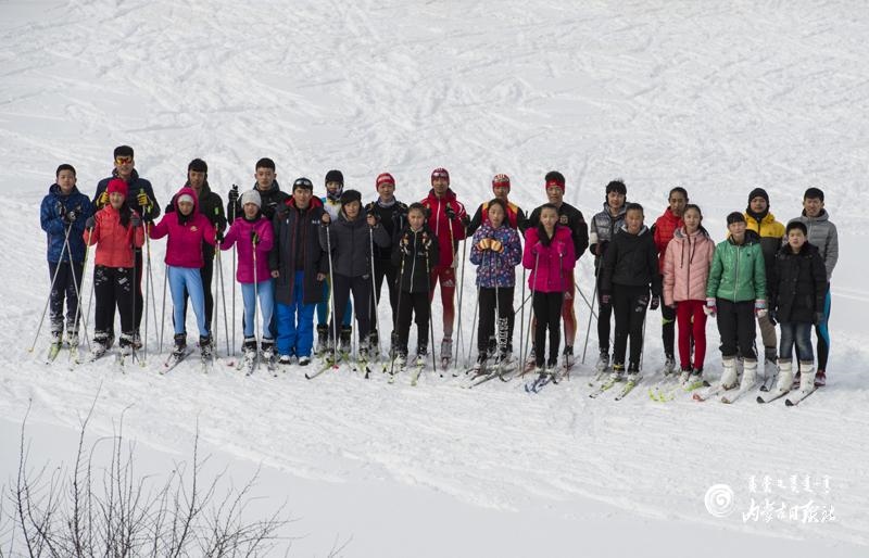 劉東雨帶領(lǐng)下的牙克石市第一中學滑雪隊。