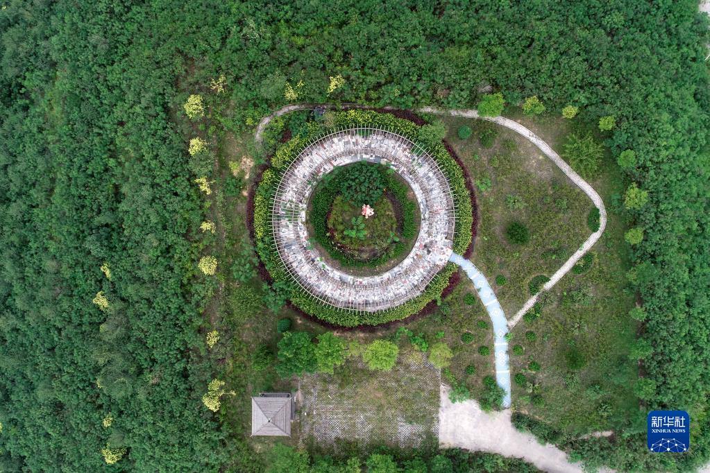 在山西省靈石縣兩渡鎮(zhèn),山西焦煤汾西礦業(yè)兩渡煤業(yè)公司在矸石山上建起來的公園(2018年9月4日攝,無人機照片)。新華社記者 詹彥 攝