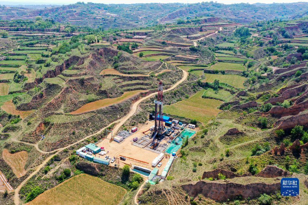 這是華新燃氣山西藍焰煤層氣集團有限責任公司位于山西省長治市武鄉(xiāng)縣的一處鉆井現(xiàn)場(2021年6月22日攝,無人機照片)。新華社記者 曹陽 攝