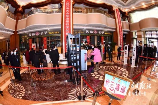 代表們有序通過安檢,第一時間進行核酸檢測,領取資料,辦理入住,以飽滿昂揚的精神狀態(tài)向大會報到。