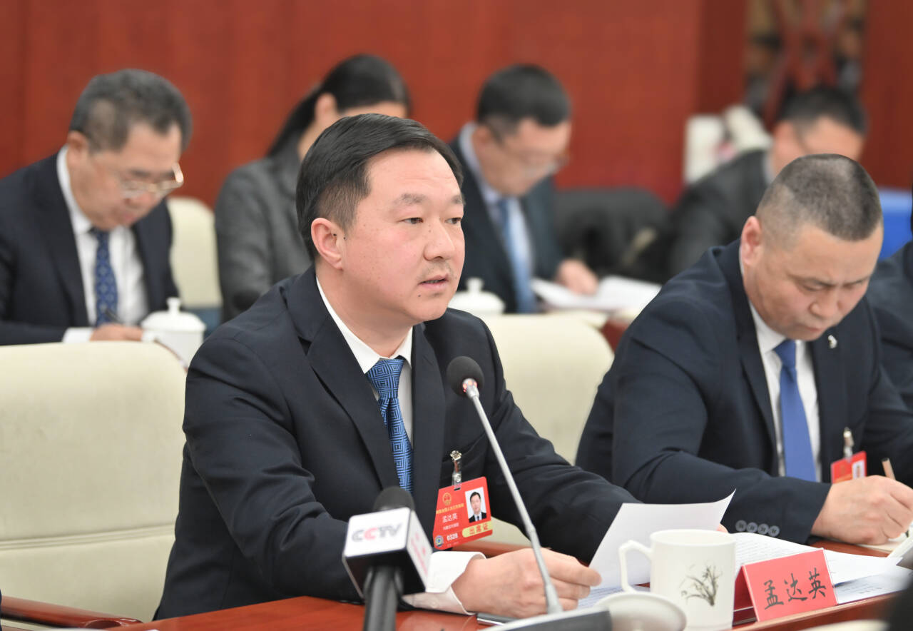 3月9日,全國(guó)人大代表孟達(dá)英(左)在審議“兩高”工作報(bào)告時(shí)建議,最高人民法院應(yīng)出臺(tái)有關(guān)破壞濕地行為定罪量刑標(biāo)準(zhǔn)的有關(guān)法律配套司法解釋。草原云記者 馬建兵 攝