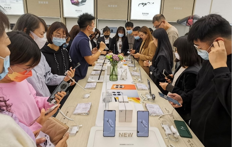 9月21日上午10:08,華為Mate50系列全渠道迎來正式發(fā)售,內(nèi)蒙古各大零售門店銷售火爆,不少消費者前往門店排隊購機。