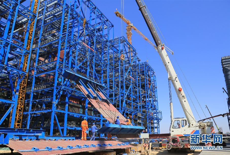 內(nèi)蒙古久泰新材料有限公司年產(chǎn)100萬噸乙二醇項(xiàng)目鍋爐島施工現(xiàn)場。 -