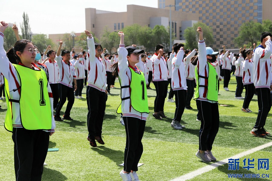 在緊張的備考狀態(tài)下,呼和浩特市第二中學(xué)加強(qiáng)對(duì)學(xué)生身體素質(zhì)訓(xùn)練,健康備考。新華網(wǎng) 李倩攝 -
