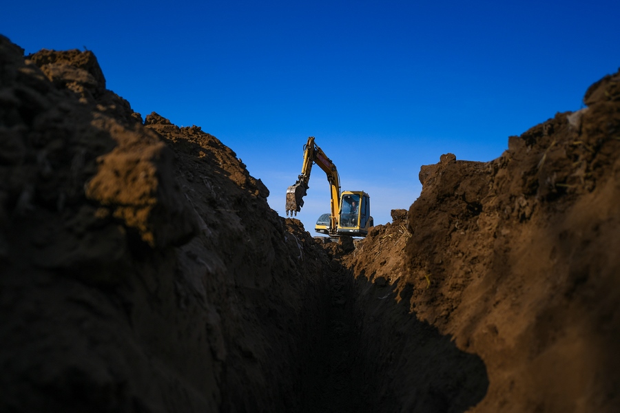 連日來,隨著天氣轉(zhuǎn)暖,呼和浩特市土默特左旗各鄉(xiāng)鎮(zhèn)、各部門迅速掀起春耕備耕熱潮,紛紛搶抓農(nóng)時,全力投入春耕備耕生產(chǎn)中,為農(nóng)業(yè)增效、農(nóng)民增收打下了堅(jiān)實(shí)的基礎(chǔ)。圖為高標(biāo)準(zhǔn)農(nóng)田建設(shè)施工現(xiàn)場。(攝影:楊鑫) -
